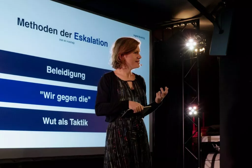Wie können wir miteinander reden, wenn die Themen allzu hitzig werden? Journalistin und Digitalexpertin Ingrid Brodnig gibt hilfreiche Tipps am 10.10.2025 im Bertholdsaal Weyer!